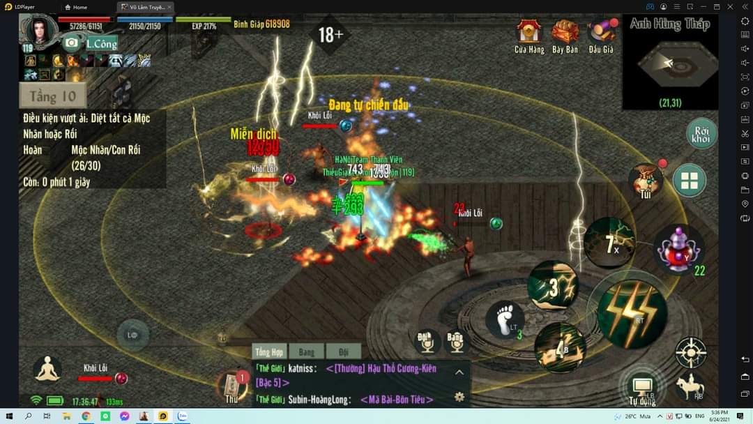 9/ Ải Mộc Nhân : Cái ải này tốt nhất bỏ qua, vì thực tế giết Cọc Gỗ thì chết lẹ, nhưng cọc gỗ biến thành Mộc Nhân rất khó giết. Côn Lôn Sét damage dồn như vậy mà chỉ giết đc có 27 con. Tôi thì damage có 5000 thôi. Mấy ông top chắc qua được